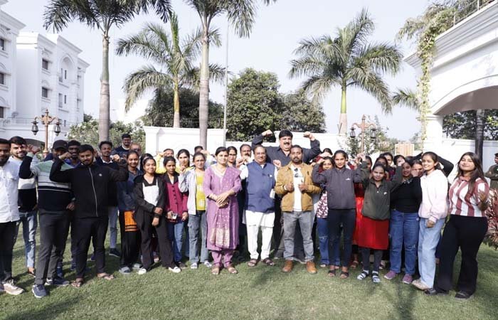 रायपुर । एशिया के सबसे ताकतवर व्यक्ति में शुमार रायपुर निवासी मनोज चोपड़ा विख्यात मास्टर मार्शल आर्ट ट्रेनर दिलीप कुमार (बिलासपुर), आत्मरक्षा प्रशिक्षिक रोशनी सिंह, आत्मरक्षक ट्रेनर एंड मैनेजमेंट सिद्धार्थ प्रताप सिंह (प्रयाग) ने आज प्रदेश भाजपा कार्यालय में अपनी कलाबाजी का प्रदर्शन किया तथा शारीरिक क्रियाओं के माध्यम से आत्मरक्षा के तरकीब सिखये। रोशनी सिंह ने महिला कर्मचारियों को प्रतिकूल परिस्थितियों में आत्म रक्षा के गुर सिखाये। इस अवसर पर प्रदेश उपाध्यक्ष जगन्नाथ पाणिग्रही, कार्यालय मंत्री अशोक बजाज ने सभी का सम्मान किया तथा उनके उज्जवल भविष्य की कामना की।