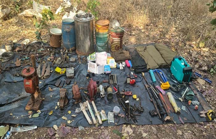 बरामद सामग्री में 02 नग इंसास राइफल, 01 नग .303 राइफल, 02 नग 12 बोर हथियार, 01 नग देशी कट्टा, 01 नग सुरका (देशी बीजीएल लॉन्चर), 02 सिंगल शॉट हथियार, 127 जिंदा राउंड, 08 मैगजीन, 22 बीजीएल सेल, इलेक्ट्रिक वायर का बंडल तथा हथियार बनाने और मरम्मत में उपयोग होने वाले टेक्निकल वर्कशॉप के विभिन्न उपकरण शामिल हैं।