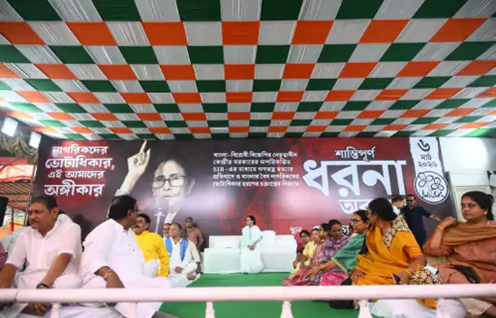 यह धरना दोपहर करीब 2:15 बजे शुरू हुआ। प्रदर्शन राज्य में चुनाव आयोग के पूरे दल के प्रस्तावित दौरे से दो दिन पहले हो रहा है। इसकी घोषणा पहले TMC के राष्ट्रीय महासचिव अभिषेक बनर्जी ने की थी।