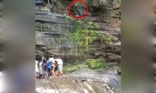 नीचे की चट्टानों पर अत्यधिक फिसलन होने के बावजूद युवक ने यह जोखिम भरा कदम उठाया। थोड़ी ही देर में उसे उतरने में मुश्किल होने लगी। पास खड़े लोगों की नजर जब उस पर पड़ी तो वे भी चिंतित हो उठे और मदद के लिए उसकी ओर दौड़े। घटना का एक वीडियो भी सामने आया है, जिसमें युवक पेड़ की जटा से लटकता हुआ दिखाई दे रहा है और नीचे उतरने का प्रयास करता है। यह दृश्य वहां मौजूद हर व्यक्ति के लिए डरावना था, क्योंकि एक छोटी सी चूक से बड़ा हादसा हो सकता था।